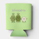 A cute pineapple guava (also called feijoa) trio in happy cartoon illustration style. Lots of animated fun on a green and yellow polka dot background.