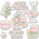 Vinyl Kiss-Cut Stickers in pink and Green with an adorable baby bear & Christmas tree, cute Christmas elements and custom text for a baby girl or little girl. Easily personalise all the text. - Kate Eden Art