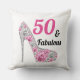 This is a Fifty and Fabulous birthday throw pillow with a rhinestone jewel High Heel.