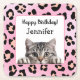 Create a purr-fectly memorable Celebration on your Special Day with these Cute Sneaky Cat Birthday Paper Coasters. This Whimsical Adorable Cat is peeking out from behind pink vibrant animal print colours. Sure to bring a smile to a Cat Lover's face! Make every meal feel like a delightful adventure with this Charming Kitty Paper Coaster. Perfect for birthday parties, Cat-themed gatherings, or just because! Personalise this Kitten Birthday Paper Coaster by Adding Your Own Name!