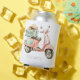 This cute personalized can cooler features watercolor scooters on the front and back in soft shades of pink and aqua green. Personalize each side with your choice of name or special text. Fun for girl's weekends and bridesmaids party favors.