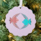 Cute Pink and Blue Love Birds Custom Tree Decoration Card