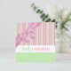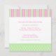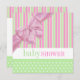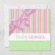 Customisable baby shower invitation template featuring a cute pink and green modern design with satin bow, stripes and polka dots.