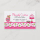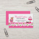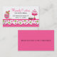 Pretty bakery business card done with graphic artwork of a whimsical pink, green, and white polka dot scalloped edge, on the bottom of the card. Graphics of pretty cupcakes, brownie, and a cookie jar decorate this adorable bakery business card. Text in pink and black is fully customisable to suit your business needs. Personalise the text for your bakery business. Great for at home bakers too.