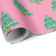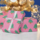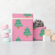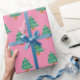 Cute Pink and Green Christmas Trees Pattern Wrapping Paper