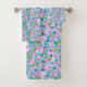 Cute pink and green bath towel set featuring hand drawn frogs and lily pads make this a unique, girly addition to a bathroom decorated for girls. Perfect for a fun addition to a kids' bathroom, or just make it a nice addition to her bathroom if she's into having amphibians for pets. Great as a frog lover gift for a new homeowner or someone moving into their first apartment.