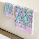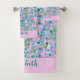 Cute Pink and Green Frogs Custom Name Girly Bath Towel Set