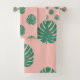 Cute Pink and Green Tropical Monstera Leaf Pattern Bath Towel Set