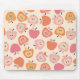 Abstract seamless retro style pattern with pink and orange chequered and striped apple decoration on pastel pink background for everybody who likes cute cartoon style decoration.