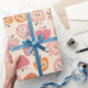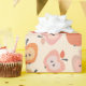 Abstract seamless retro style pattern with pink and orange chequered and striped apple decoration on pastel pink background for everybody who likes cute cartoon style decoration.