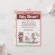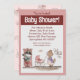 Cute pink baby shower invitation with old fashioned illustration featuring cute woodland animals and a pink baby buggy. Look for similar invitations in my shop, one with blue colour scheme and one with green.