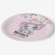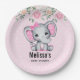 Cute Pink Baby Elephant and Roses Border Shower Paper Plate