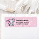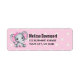 Address labels with a cute pink elephant watercolor illustration. She has cute pink and white polka dot ears and a pretty pink ribbon bow on top of her head.