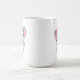 A mug with a cute pink elephant watercolor illustration. She has cute pink and white polka dot ears and a pretty pink ribbon bow on top of her head.