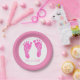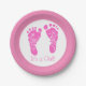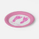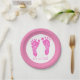 Cute Pink Baby Footprints Its a Girl Baby Shower Paper Plate