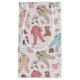 This cute Christmas baby gift bag features a hand-drawn pattern of Christmas baby bodysuits, adorable winter stuffed animals (penguin, reindeer, teddy bear), bibs, bottles, pacifiers and xmas gifts, all against a soft pink background with scattered cute little stars.