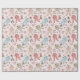 This cute Christmas baby wrapping paper features a hand-drawn pattern of Christmas baby bodysuits, adorable winter stuffed animals (penguin, reindeer, teddy bear), bibs, bottles, pacifiers and xmas gifts, all against a very soft pink with scattered cute little stars.