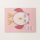 This awesome puzzle features a cute cartoon of a pink owl with sleepy eyes, a wide open beak and cute fluffy feathers. The owl is holding a bubblegum pink balloon. There is pretty pink text inside the balloon that says, “Baby Girl”. This is the perfect gift for celebrating a newborn baby girl.