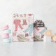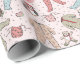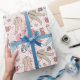 This cute personalised wrapping paper for Baby's First Christmas features a hand-drawn pattern of baby bodysuits, adorable winter stuffed animals (penguin, reindeer, teddy bear), bibs, bottles, pacifiers and xmas gifts, all against a very soft pink with scattered cute little stars. Personalise with Baby's Name to make this wrapping paper uniquely yours!