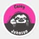 Cute Pink Back to School Peeking Sloth Name Classic Round Sticker