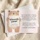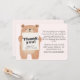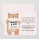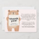 Thank your loved ones in the cutest way with this baby announcement card featuring a charming bear holding a sign that displays “Thank you” along with your baby girls name, weight, and size. The back of the card includes a heartfelt thank-you message, perfect for sharing your gratitude for gifts and support. A sweet design with a light blue theme, ideal for celebrating your little cub!