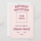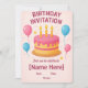 Make your celebration extra special with this adorable pink birthday invitation card featuring a cute cake illustration, colourful balloons, and cheerful confetti theme.