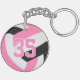 This cute volleyball themed keychain features a realistic looking pink, black and white volleyball upon which you can customise the player's name, jersey number and court position, plus school or club name and mascot name in a varsity letter style font - by katz_d_zynes