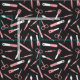Nail artist fabric in a cute manicure pattern with manicurist tools in pink and white with heart details against a black background.