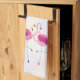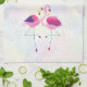 Cute pink and blue flamingos in love illustration. There is bit of background texture with very faint colourful coconut leafs pattern.