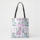 Cute beach tote bag for a girl with a pink & blue llama pattern. Easy to personalise with your name!