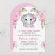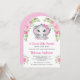 Cute Pink Bow Floral Elephant Baby Shower Invitation