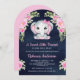 Cute Pink Bow Floral Elephant Navy Baby Shower Invitation