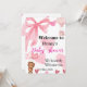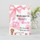 Cute Pink Bow Teddy Bear Shower Welcome Invitation
