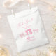 Cute bow theme birthday party favour bag featuring hand drawn illustration of pink ribbons.