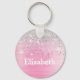 Cute Pink Brushed Metal Silver Glitter Monogram Key Ring