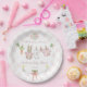 Cute Pink Bunny Girl Clothesline Baby Shower Paper Plate