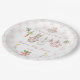This paper plate features a custom hand-painted frame of a crisp pink ribbon pattern creating a clean, classic, and welcoming look. A sweet watercolor clothesline is strung across the center, proudly displaying tiny, adorable items, each featuring a cute pink clothed bunny. The scene is completed with cute fresh carrots, bright, cheerful daffodils, wild flowers, and a bunch of carrots tied with a pink bow all rendered in a soft watercolor style. Easily add your own details and change the font style, size color and placement if you would like to.
