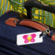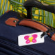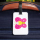 identify your bags easily with these sweet pink butterfly luggage tags featuring a bright and smiling cartoon bug. the vibrant magenta and yellow colors ensure your suitcase stands out at the airport while showcasing a whimsical nature design. durable and fun, these travel accessories are perfect for kids and adults who want to bring a touch of happy garden charm on their next vacation.