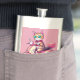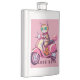 Cute pink cat with eyeglass and motorcycle hip flask