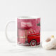 “Cute Pink Christmas Mug – Red Car & Tree Holiday