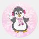 Cute Pink Christmas Penguin with Snowball Holiday Classic Round Sticker