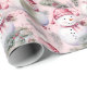 Cute Pink Christmas Snowmen & Greenery Wrapping Paper