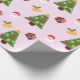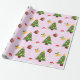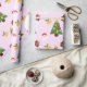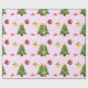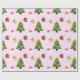 Christmas Wrapping paper with doorbells, Santa Claus, Candy House, and a big Christmas tree on a beautiful pink fond. Love pink, love to love and be loved.