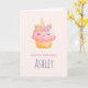 Cute Pink Cupcake Unicorn with Roses Birthday Card