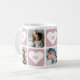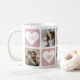 Pink custom photo love mug with hearts! Create the perfect gift for your mom or grandma by personalizing this cute custom photo love mug featuring five photos and five hearts with the text love inside them. This sweet love mug is great for a Mother's Day, Grandparents Day, birthdays, or holidays. Easily personalize this mug with photos of grandchildren, family photos, pets and more. Surprise your mom or grandma with a beautiful custom photo gift that is sure to put a smile on her face. For custom requests, please contact us via Zazzle chat.