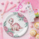 Cute Pink Dinosaur and pink Baby Shower Paper Plate