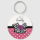 What girly girl can resist this cute pink and white polka dot pattern keychain with a trendy black and white chevron bow and a chic purple ribbon rose. It is easy to personalize this pink and purple retro meets modern design by adding the name of your teen girl to the text template area. Flat printed image, NOT actual rosette ribbon and bow.