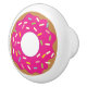 Cute pink glazed doughnut door and drawer pull knobs or handles. Fun food theme design with white background colour. Customisable background colour. Sweet doughnut with coloured sprinkles. Make your own custom interior. Fun DIY accessories for home or business. Great for kitchen, bedroom cabinets, baby nursery, kid's room, candy shop etc. Custom home decor ideas.