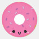 A cute pink doughnut sticker with purple sprinkles and a smiling face.