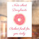 Add your doughnut shop name and customise the text on this cute cartoon pink frosted cake doughnut with sprinkles window sign that also says: Baked fresh for you daily.
